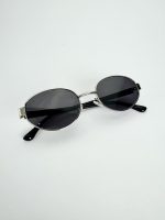 Metallic Halo – Gafas lente negro vintage, marco metálico satinado